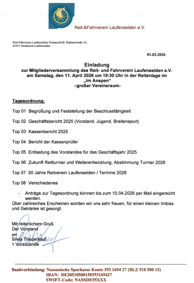 Wir freuen uns auf ein schönes beisammen sein bei unserer Mitgliederversammlung am Samstag, den 11.4.2026